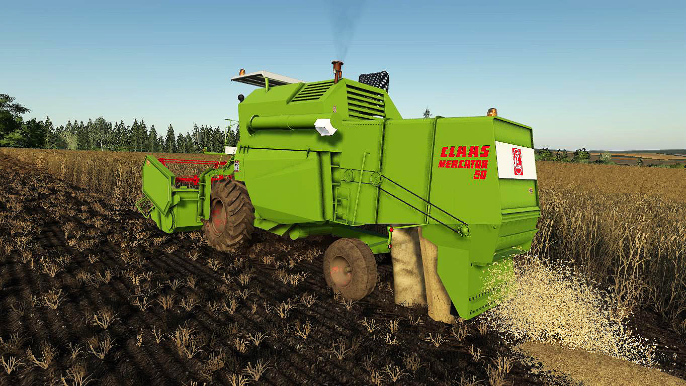 MOD CLAAS MERCATOR 60 FOR FARMING SIMULATOR 2019 Power: 110 l / s, speed: 23 km / h, hopper volume: 4500 l. Two types of design, grain header Claas C420 (4.2 m), lighting equipment, beacons. Washable.