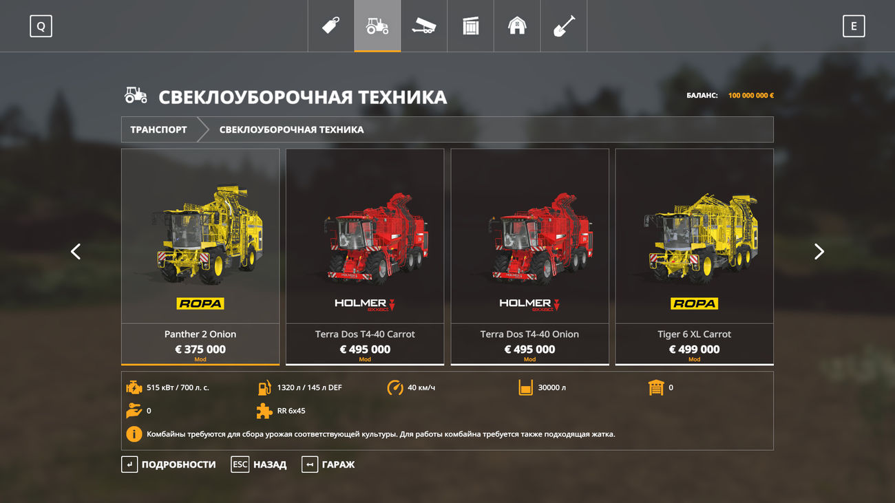 A mod for cleaning onions from three combines and reapers (Holmer Terra Dos T4-40, Ropa Panther 2, Ropa Tieger 6 Xl); Credits: DirkSch |