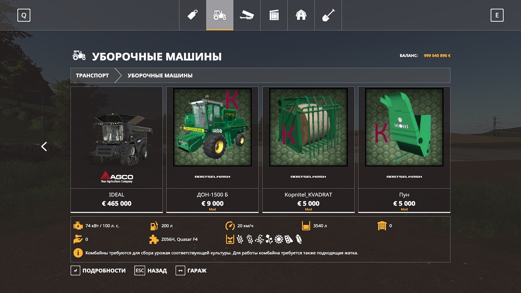 Mod DON-1500B V1.0.0.0 for Farming Simulator 2019 - Power: 99 kW / 135 hp.; Authors: - FS17: Silver_KHL. - FS19: Unknown. Credits: Silver_KHL |