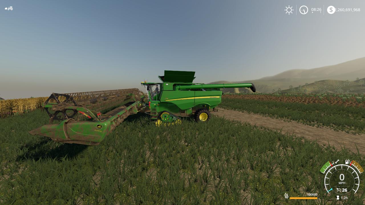 John Deere S790 VE Pack John Deere S790 Harvester 975 hp Speed is 52 km / h. The volume of the bunker is 100 000 liters 645FD Grain Reaper Soiled and washed The log is clean.
