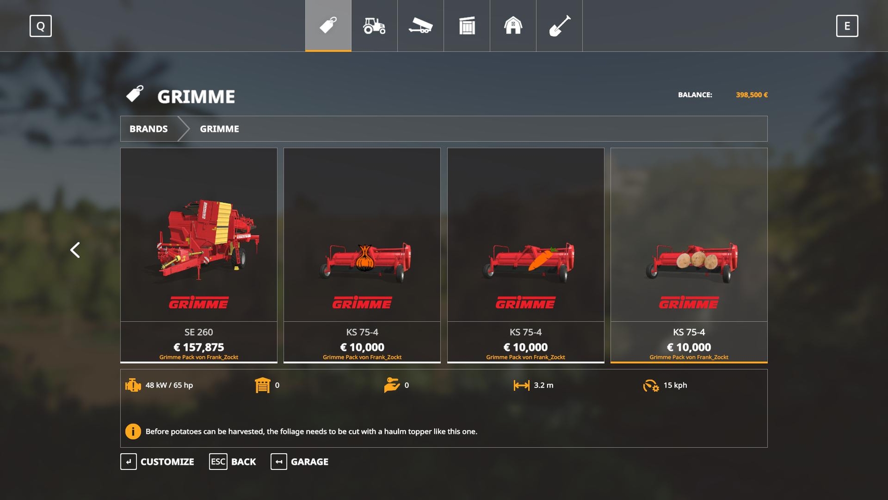 MOD GRIMME PACK SE260 KS75 V1.0.0.0 FOR FARMING SIMULATOR 2019 This Grimme set includes a potato harvester and a Krautschlaeger Ks75-4. Added: * New fruits should be available on the map! Credits: Ifko |