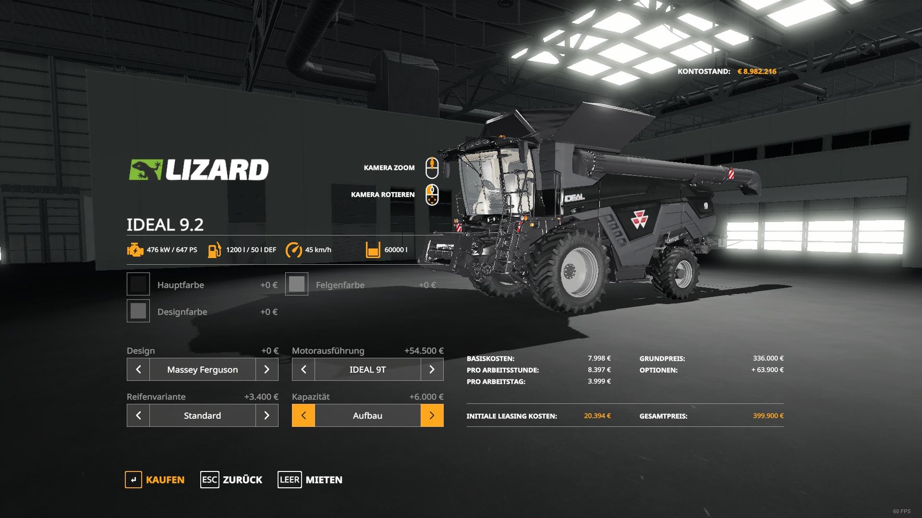 Ideal 9.2 has an extended hopper selection (17100,50000,60000,80000,100000), color selection and maintenance interval.