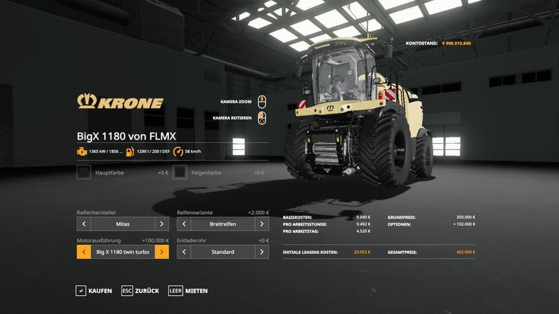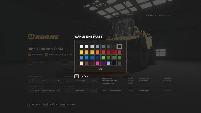 Crown BigX 1180: Optional color Modified and adapted engine versions: BigX 1180: 900 hp, 41 km / h, price: 0 € BigX 1180 Turbo: 1156 HP, 50 km / h, price: 50,000 € BigX 1180 twin turbo: 1856 hp, 58 km / h, price: 10000 € The base price has been reduced to € 320,000.