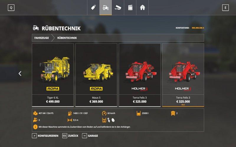 Holmer Terra Felis 3 for Farming simulator 19 Terra Felis 3 verändert, Michelin Reifen Power: 545 PS Maximum Speed: 60 Kmh Kapazität 25000 Potato ready.
