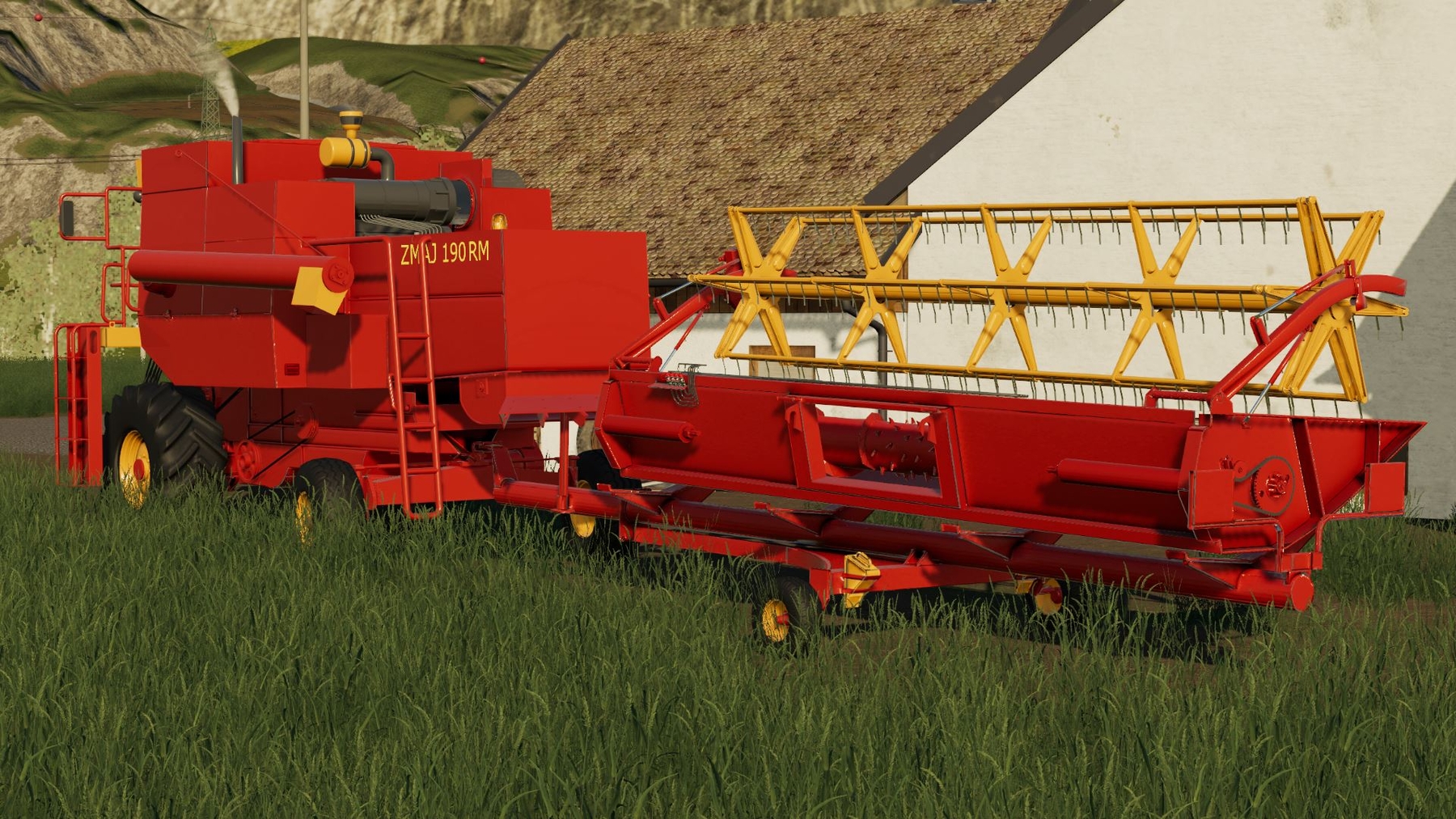 Mod ZMAJ 190 RM V1.0.0.0 for Farming Simulator 2019 - Power: 147 kW / 200 hp.; - Speed: 22 km / h; - The volume of the fuel tank: 100 l.; - Cost: 21 500 €; - Bunker volume: 5 600 l .; - The door and window opens using the mouse; - Animated gearshift lever, instruments; - Working lighting; - leaves traces; - Included: 3 reapers and trailer for transporting reapers. Credits: Stefo, Vuki |