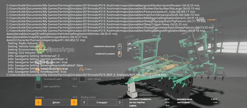 - Price: 5000 €; - Working speed: 15 km/h; - Required power: 160 hp; - Working width: 6.3 m; - Color configurations; - Disk configuration; - Wheel configuration; - Configuration of the trailer; - The log is clear.
