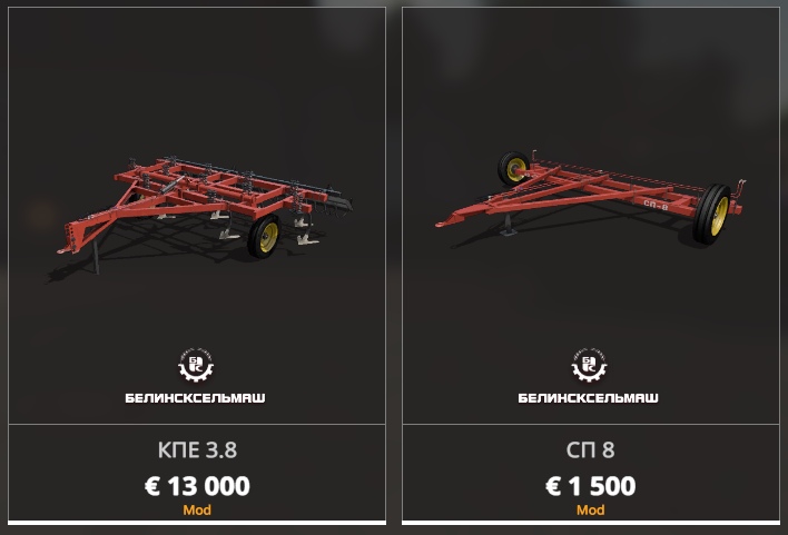 SP 8 is intended for the compilation of a wide-scale unit of two KPI 3.8 cultivators. Required power 75 hp, working width 3.9 m., The price of 13,000 euros. Credits: RusAgroTeh. FS 19 scholl |