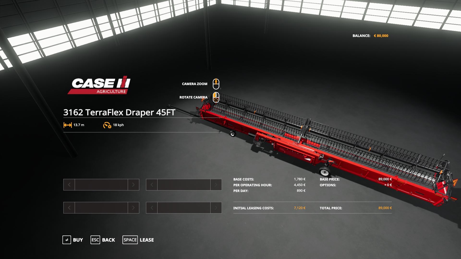 changed header speed to 11 mph in field. Working Width: 13.7 Price: 89000 Brand: CASEIH Category: cutters