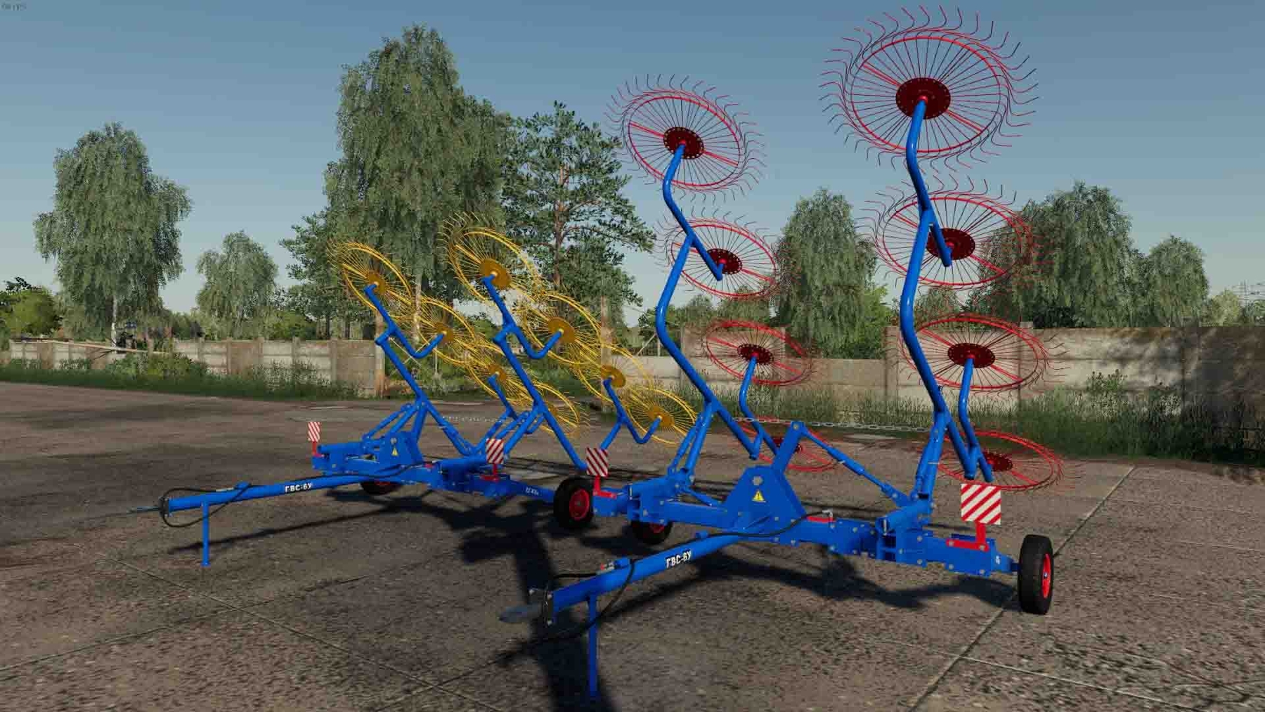 MOD GVS-6U V1.0.0.0 FOR FARMING SIMULATOR 2019 Rake rakes GVS-6U. Model: GVS-6U. - Price: 1300 €. - Working width: 6.5 - 7 m. - Recommended power: 35 l / s. - Working speed: 18 - 19 km / h. Additional options: - Choice of color (chamomile) red, yellow. Authors: - voiyka_13 - (model GVS 6U) (RusAgroTech). - Sergey Danilenkov - (wheels). - dimaks - (edit model, textures) (RusAgroTech). - Ra $$ el - (in Game FS19) (RusAgroTech).