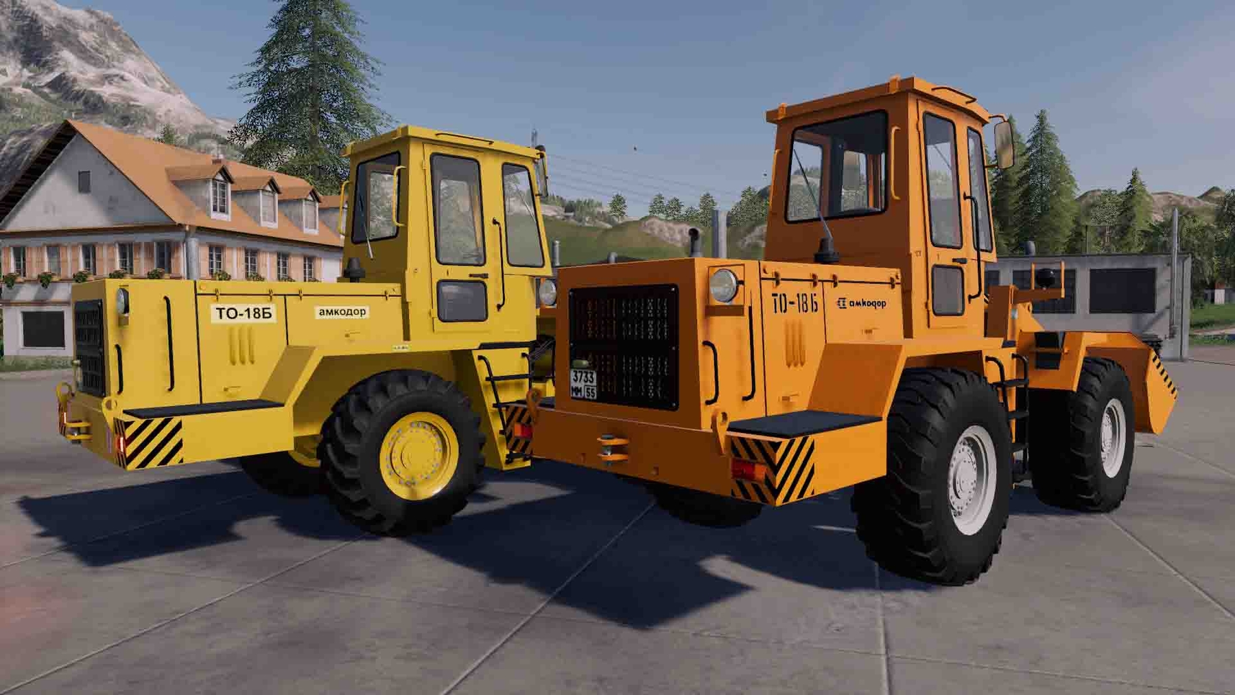MOD AMKODOR TO-18V V1.0 FOR FARMING SIMULATOR 2019 Amkodor TO-18B without quick-detachable hardware mount. - Power: 99 kW / 135 hp; - Speed: 30 km / h; - Fuel tank volume: 170 l .; - Cost: 23 500 €; - Choice of the main color; - Choice of design color; - Choice of rim color; - Choice of wheels; - Choice of decals; - Animated devices, pedals; - Working lighting equipment; - Working mirrors; - Leaves traces; - Gets dirty and washed; - Bucket volume: 3000 l.