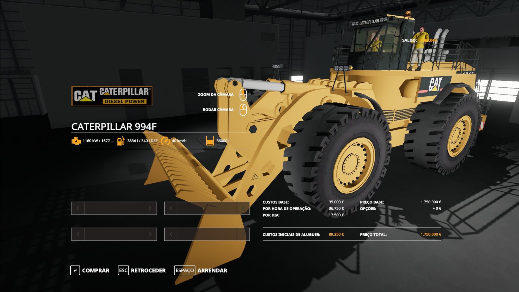 Mod CAT 994F v0.1 for Farming Simulator 2019 Power 1577 HP Bucket capacity 36,000 liters. Credits: stefan,Rambow145 |