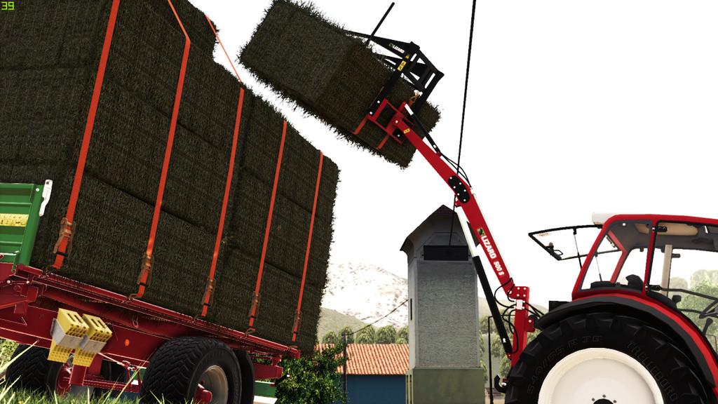 This is tractor equipment for many farm jobs. This package has a loader lever and all equipment such as bale forks, bucket, special equipment with ratchet straps