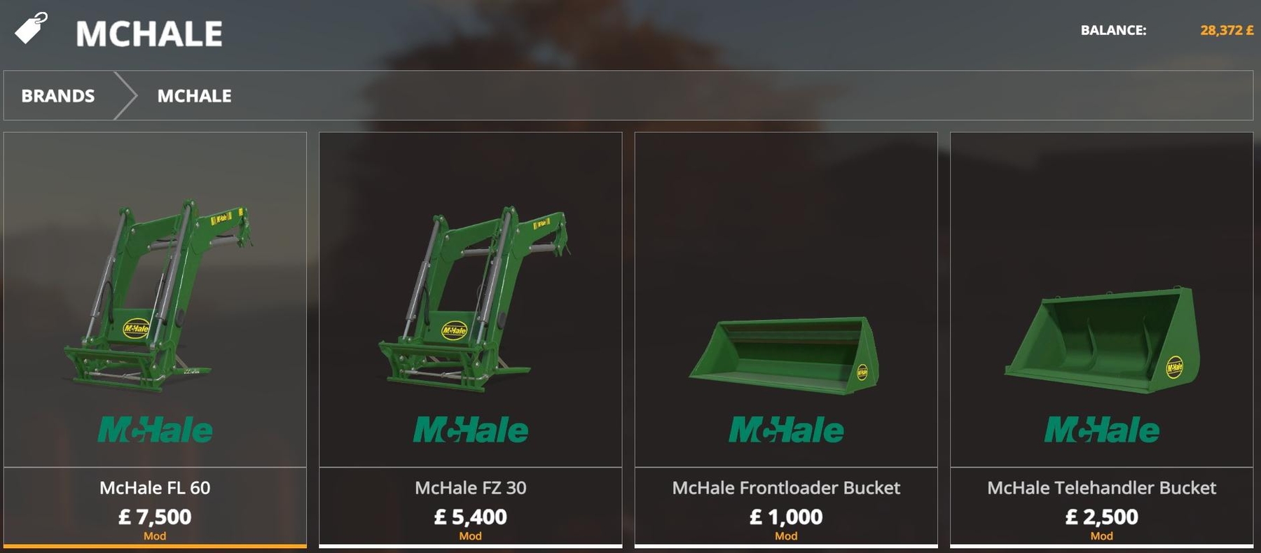 Mod McHale Loader Pack v1.0 for Farming Simulator 2019 Standard FS 19 Equitment Re-textured in Mchale * 13 items selected for packaging Credits: FSVelocity |