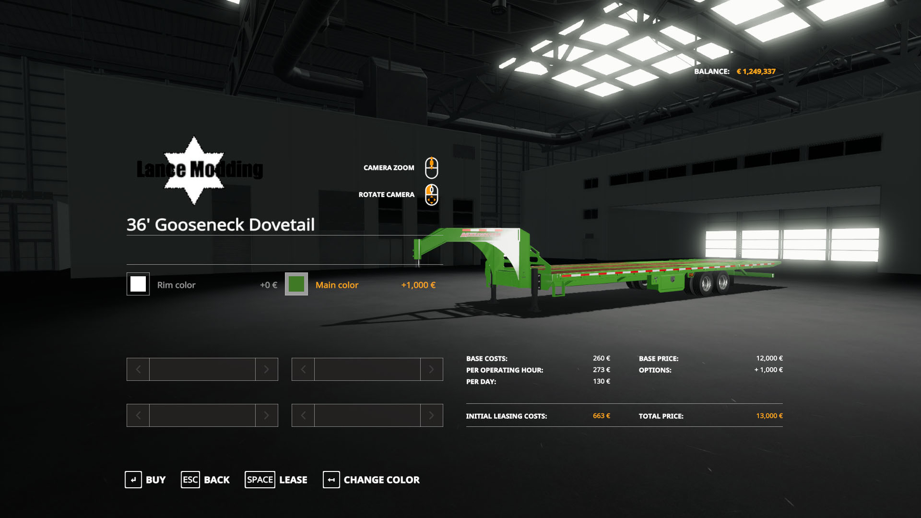 Mod Midsota 36 'Gooseneck Dovetail v1.0.0.0 for Farming Simulator 2019 Cost: 12,000 Manufacturer: Lance Combination: Truck Category: low loader semi-trailers Credits: Lance |