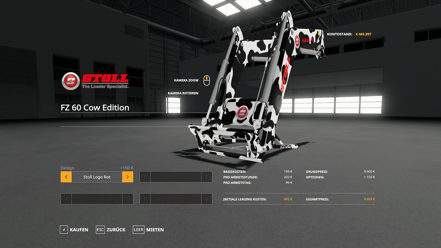 Front loader Stoll FZ60. If Valtra already exists in the well-known Cow Edition, the corresponding front loader in the same design should not be missing. features: Credits: Giants, Jekyll |