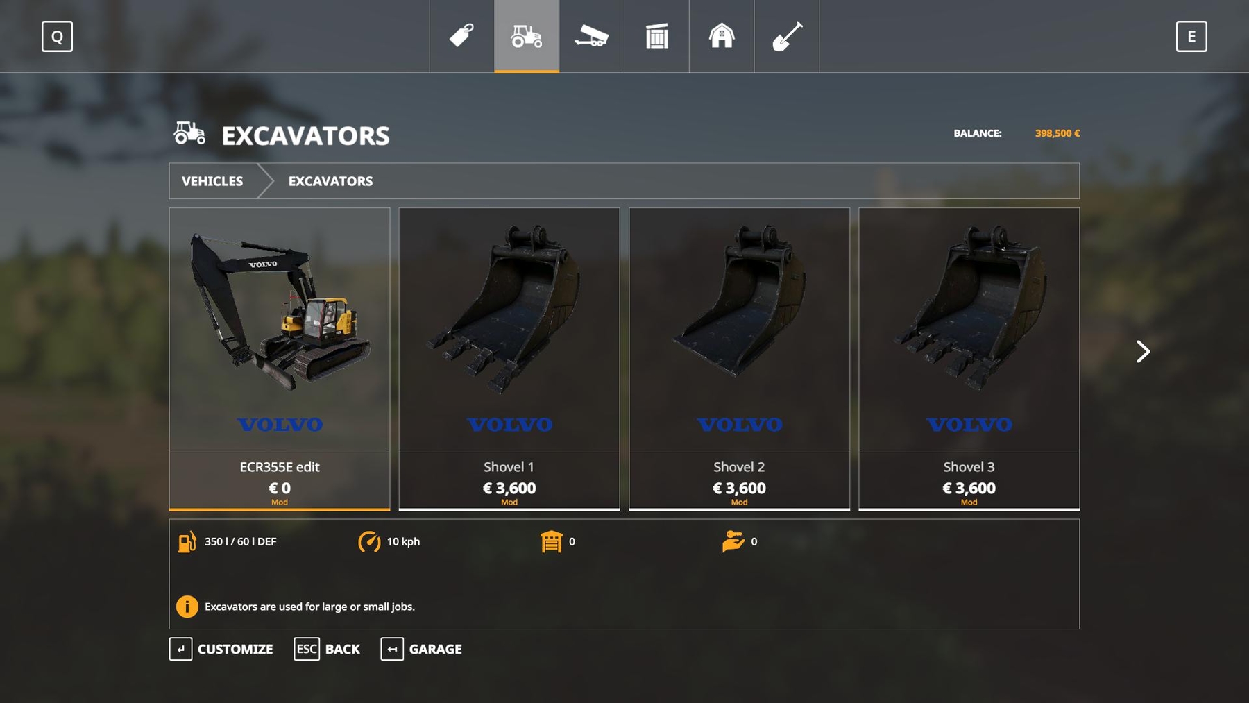 Mod Volvo ECR335E v1.0.0.0 for Farming Simulator 2019 Maximum speed: 10 km / h Credits: TMP/Polygonish |