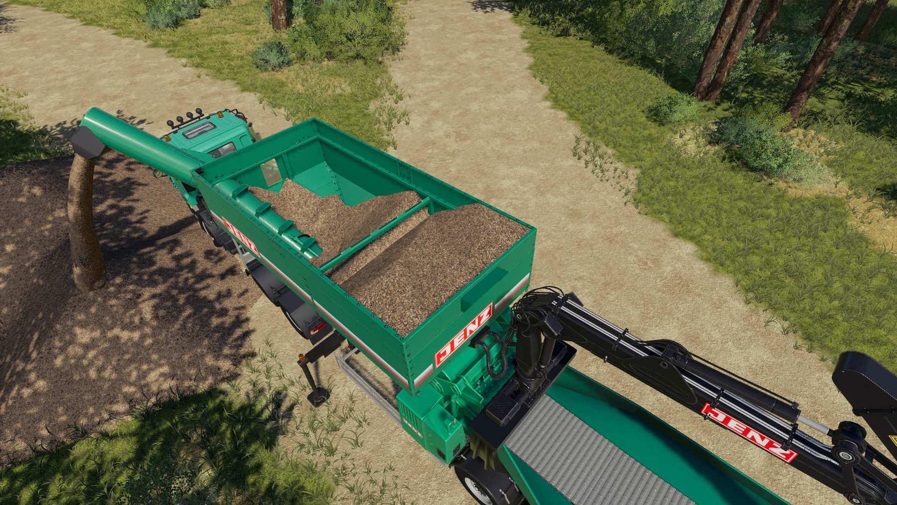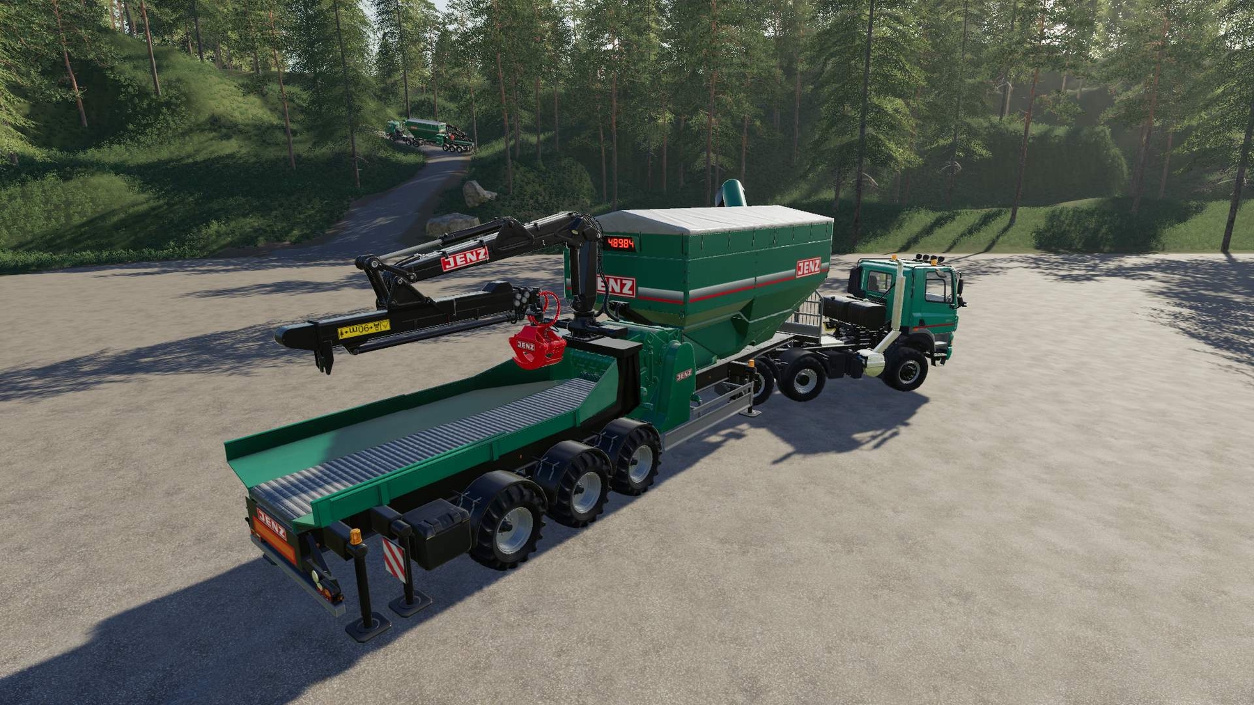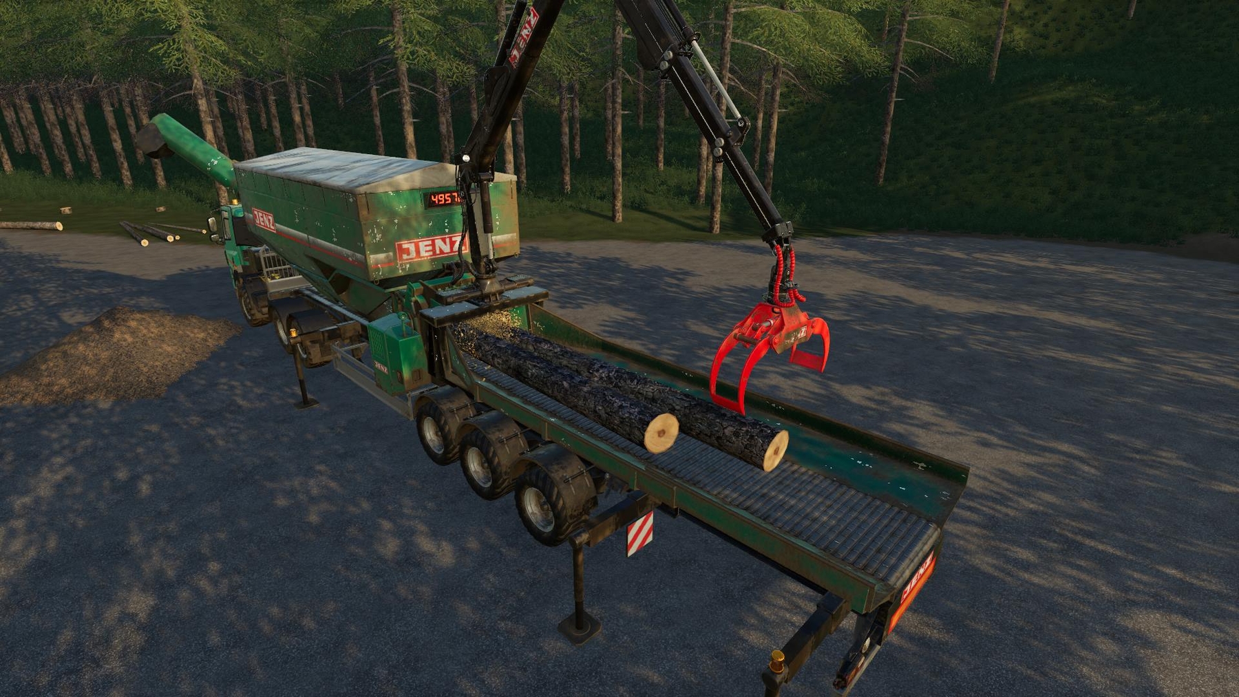 MOD JENZ WOOD CRUSHER V1.0.0.0 FOR FARMING SIMULATOR 2019 With this pull-out table wood chipper you can quickly turn long logs (up to 10 m) into chips. - You can enter the wood chipper and operate it even if it is not attached to the truck (the chipper is not available) - When you reach 95% of the capacity, an audible signal will sound - When the capacity is full, the chipper stops automatically and you need to unload the chips through a pipe. - The current fill level is displayed on the trailer - Removable cover - Work lights on arm and pipe - Always unfold the wood chipper before working with the log boom (otherwise it may be unstable) Wheel configurations: Standard / Forestry / Wide tires Capacity: 55,000 L Cost : 320,000 € Required power: 250 HP If you find any bugs or problems, let me know in the comment or at kenny456@seznam.cz and I will fix them in the next version.