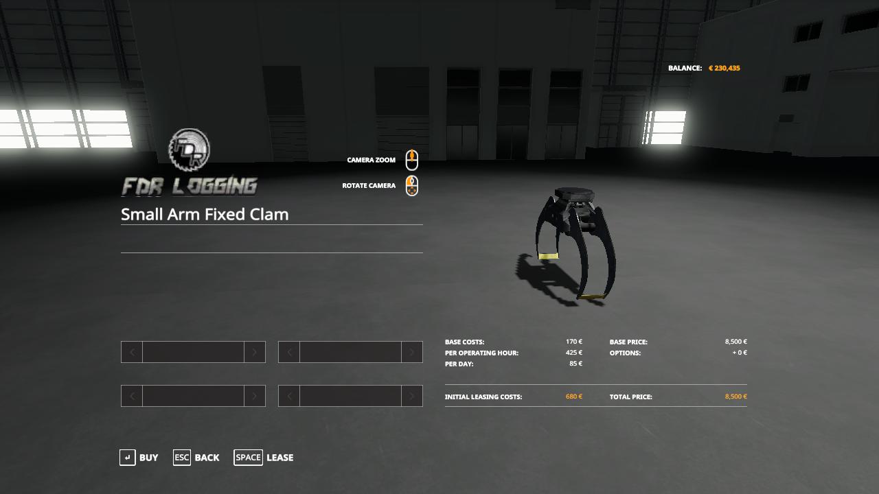 Мod Small Arm Fixed Clam v1.0.0.0 for Farming Simulator 2019 Simple grip for logs for working in the forest. Credits: FDRLogging |