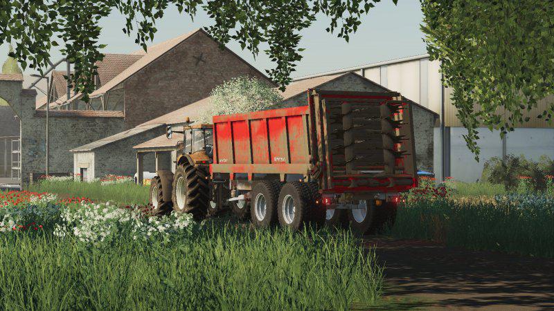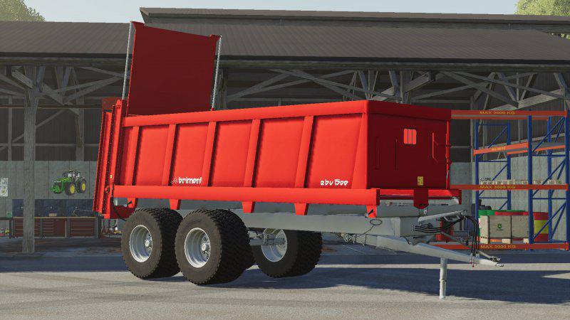 Spreader Brimont 2 axles Capacity: 23 500 l Spreading width: 15m Price: € 38,600 Cardan animation, dynamic hoses, FS19 texture system