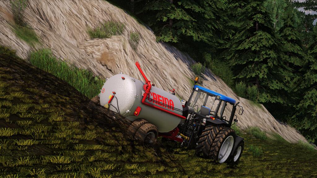 The tank is also suitable for mountain farms as you can drive on a flat road and spray from a cannon far away on steep slopes where it is otherwise too steep for a tractor.