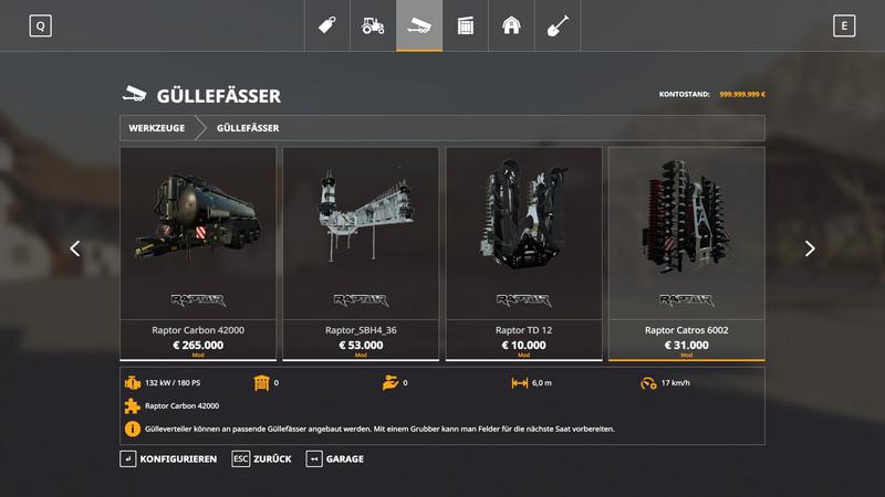 MOD RAPTOR CARBON PACK V1.4.0.0 FOR FARMING SIMULATOR 2019 Version 1.4.0.0 Raptor manure pack contains: Added lights Credits: Reider7479 |