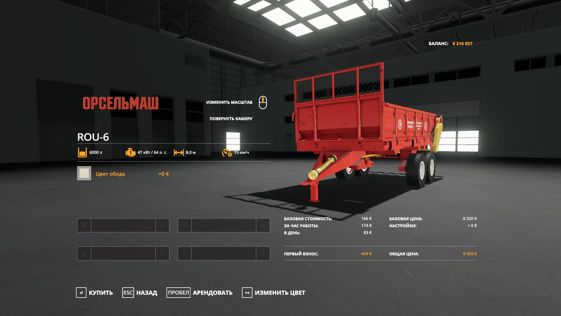 Working width is 8 meters, volume is 6000, the required power is 64 hp, the price is 8320. Credits: scholl |