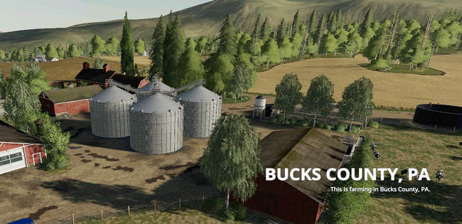 Mod BUCKS COUNTY PENNSYLVANIA V1.0.0.0 for Farming Simulator 2019 Going to establish a farming business in Pennsylvania, USA. The map was created with a claim to a realistic environment. Various custom buildings were used, irregularly shaped fields were made, and much more. Mod Features Posted by Ag Hauler, TNT Modding Credits: Ag Hauler |