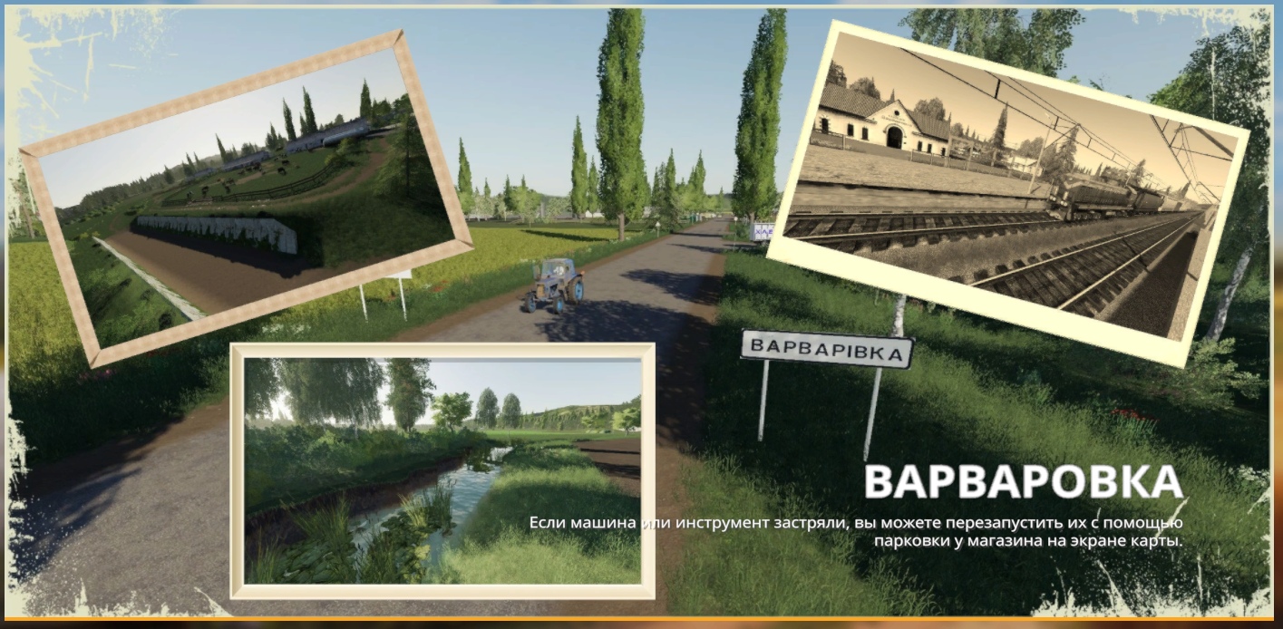 Mod CARD "VARVAROVKA" V1.1.3 for Farming Simulator 2019 - 41 fields; - All necessary points of sale; - Beauty in every corner of the card; - Many intersections. In general, the road is suitable for driving on any transport, although the whole is covered with potholes and cracks; - Russian traffic; - pedestrians; - A large number of objects. Changes v1.1.3: - Ice is tuned, i.e. if you play with the mod of the seasons, it gives a collision when necessary and if you play without the mod of the seasons, then do not ride on the water! Credits: Aleksey Potanin |