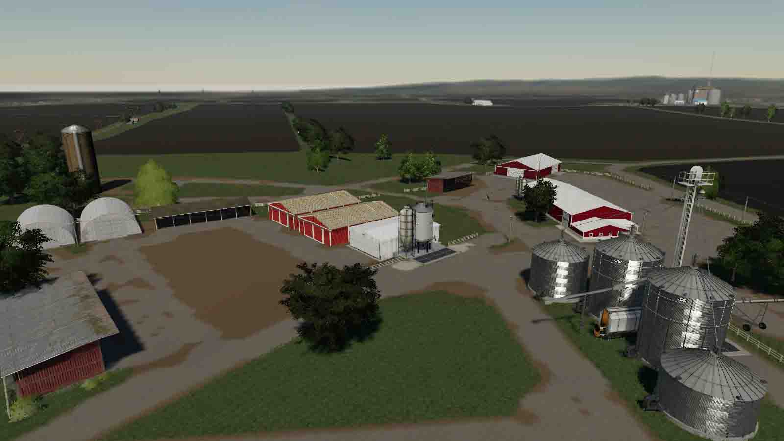 Map of the US Midwest - Map 4x - 33 large fields - Additional crops: Tobacco, hops, carrots, onions, alfalfa, spelled, triticale, sorghum, rye - Additional crops equipment (embedded in the map) - Purchased plots - Points of sale - Forest area - Two beautiful cities (Moore and Burksville) - Traffic and pedestrians - Contracts - Livestock farms (by default) -Production (by default) -In New Farmer mode - starting farm, equipment, all the necessary storage facilities In order for objects to work , you have to buy the land on which they are located. Much has been removed from the minimap and it will take you a long time to reveal everything that is hidden. The map is prepared as much as possible for people who want to just sit down and play, and not climb sites and select mods, fight teraforming, even the default technique looks organically. -Seasons no! -Need GlobalCompany! Changes in V2.3.1 - Bug fixes. It is highly recommended to start in New Farmer mode in order to follow the intended plot correctly, select the economic difficulty in the game settings. Please refer to the Readme.txt in the .zip file for more details. Write your comments in the comments or personally at the address in Readme.txt