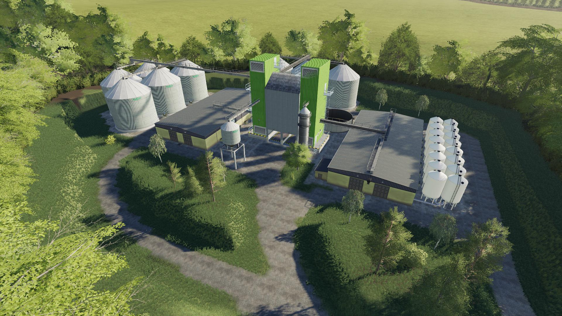 12 factories (need Global Company mod for working) spread over 6 different purchasable sites: complete feed (pigFood), concentrated feeds (TMR and alfalfa pellets), washing and cooking (beets and potatoes), hay and silage, natural fertilizers (manure and compost), seed and fuel