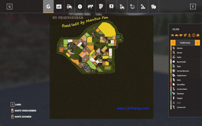 Mod FRANKEN MAP V1.0.0.0 for Farming Simulator 2019 This is a converted map from the 17s The Franken map is now also in the LS19. The Franconia map is a small but nice map with 61 fields and a par. There is a BGA, a farm, 2 villages, a contractor and a dealer. At the BGA there is still a small sheep pen. In the yard there is a grain silo where wheat barley rapeseed corn oats sunflowers soybeans potatoes straw grass hay chips pork feed manure fertilizer. In addition, there is a driving silo and a cow and pigsty in the yard. There are several speed cameras on the map that can be switched on and off at the yard. There are 8 points of sale on the map. :): thumbs :: thumbs: Please UNPACK the map and drag the mods in it into the mods folder. Credits: Spezi2.0modding |
