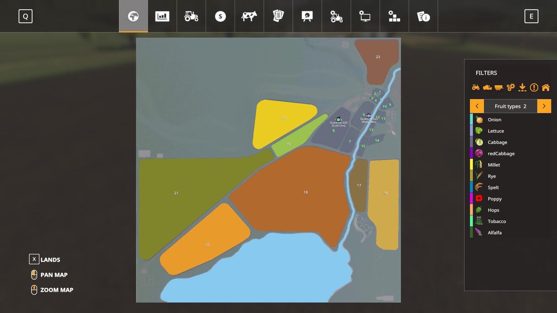MOD GARIEP SOUTH AFRICA V007 FOR FARMING SIMULATOR 2019 The map has 23 fields, 3 sales points, massive fields with a total area of about 670 hectares ... (the largest field is 190 hectares) and small (the smallest field is 0.24 hectares)
