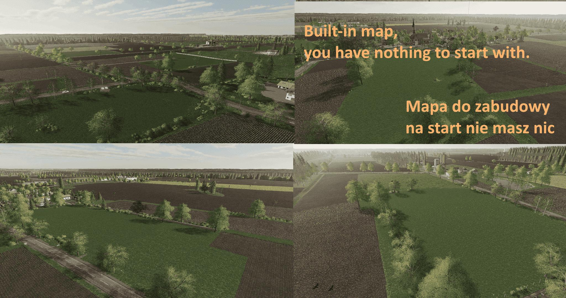 Map without farm buildings. You start from scratch, you only have an old pickup truck to start.