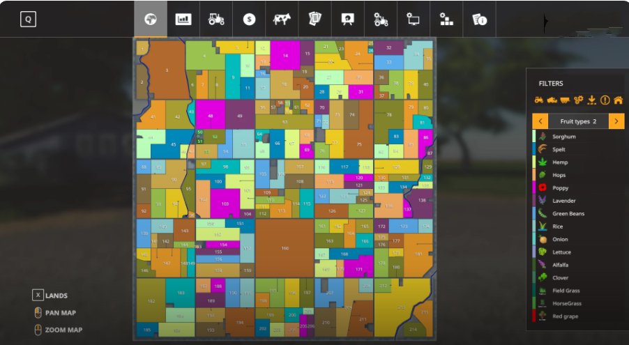 There are 13 points of sale plus a sawmill to sell your products. This map requires a Global Company to work properly. The card supports Maize Plus, but no seasons or precision farming.