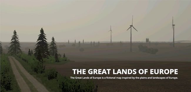 MOD Map The Great Lands Of Europe v1.0.0.0 FOR FARMING SIMULATOR 2019 The Great Lands of Europe is a fictional map inspired by the plains and landscapes of Europe. Mod features