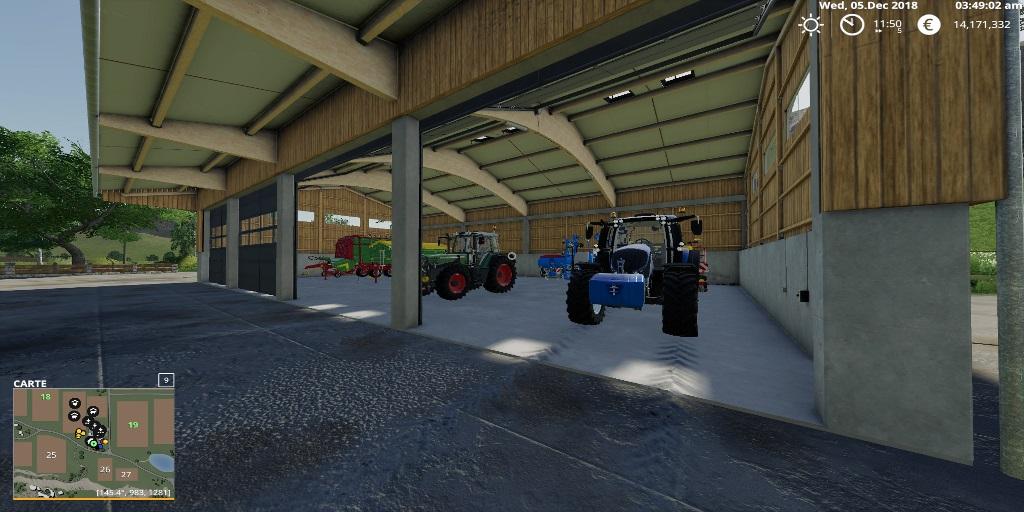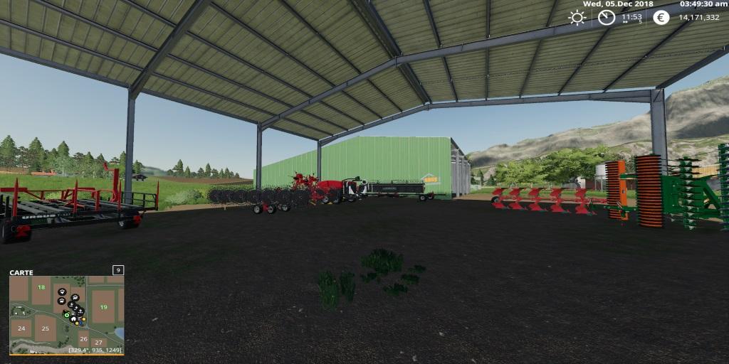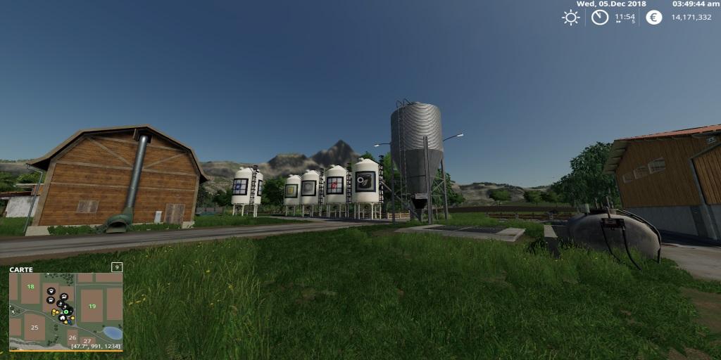 Bonjour a vous voici la version 3 de la mapDE que j' ai modifier nouvelle ferme et materiels de depart nouveau champs de depart deux zone forestieres et 4 zones pour placer vos ferme en multi j'ai egalement modifier les textures et ajouter celle de forgoten plant sur votrte ferme principale il a les silos de semences chaux fertilizant liquide et solide les vaches mouton et poules sont en place et vous avez pas mal de batiments de stockage. Credits: dj6310 |