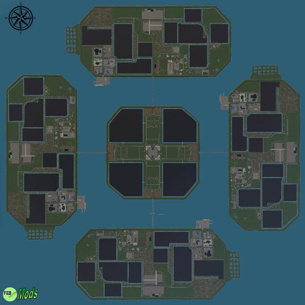 MOD NF MATCH MAP 4X V3.2.0.0 FOR FARMING SIMULATOR 2019 Four completely identical islands with 16 fields each, their own BGA, 4 trading stations each, timber sales and 3 forests 7 new products made for sale (fabric, wool knitting, clothing, shoes, pumpkin, strawberries and mushrooms)