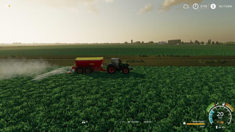 The map is part of the XLFarms project, which presents large plots of cultivation for the use of high power machines. It has a smooth topography, with small elevations, dirt roads between the fields and a low vegetation.