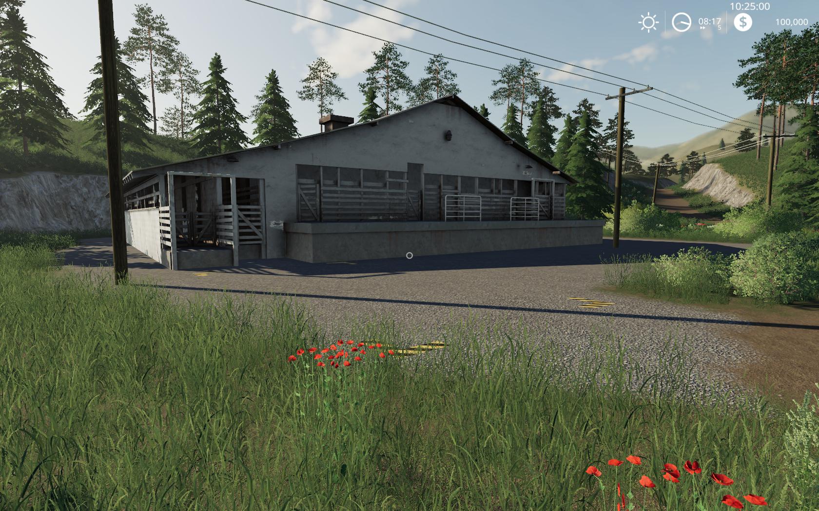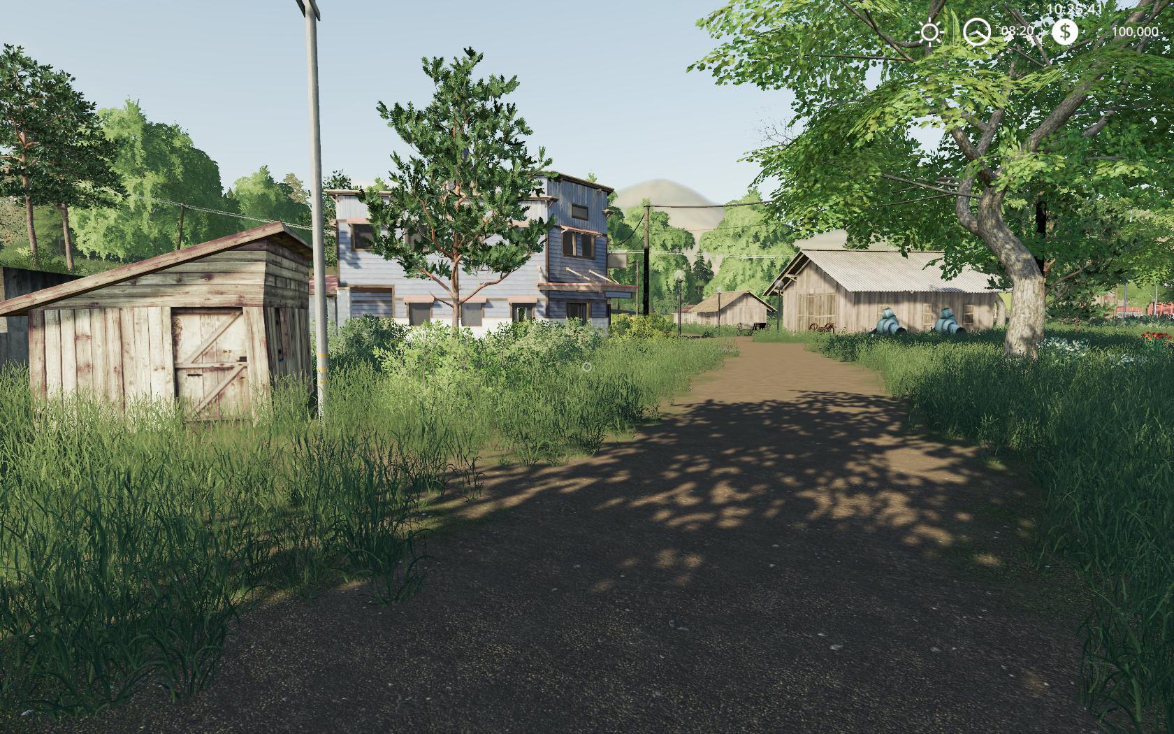 This is a small map based on what an American farm might have been like in the old days. There are 4 small farms on this map. The main farm is where you will come in at. Farm 3 is south of town where you can choose what you would like to do. The main sell point is at the Bay Hay N Feed store. There is also the Rail line that comes into town that you can sell your crops at. The dealership is located inside the Hay N Feed store to buy new tractors and implements. You can sell your extra straw and bales behind the Hay N Feed. All fields are small in size. If your into logging there are plenty of trees to cut down for the logs or make wood chips for the saw mill, and too clear land for a new farm. This map has been completely redone too utilize the new features in FS19...