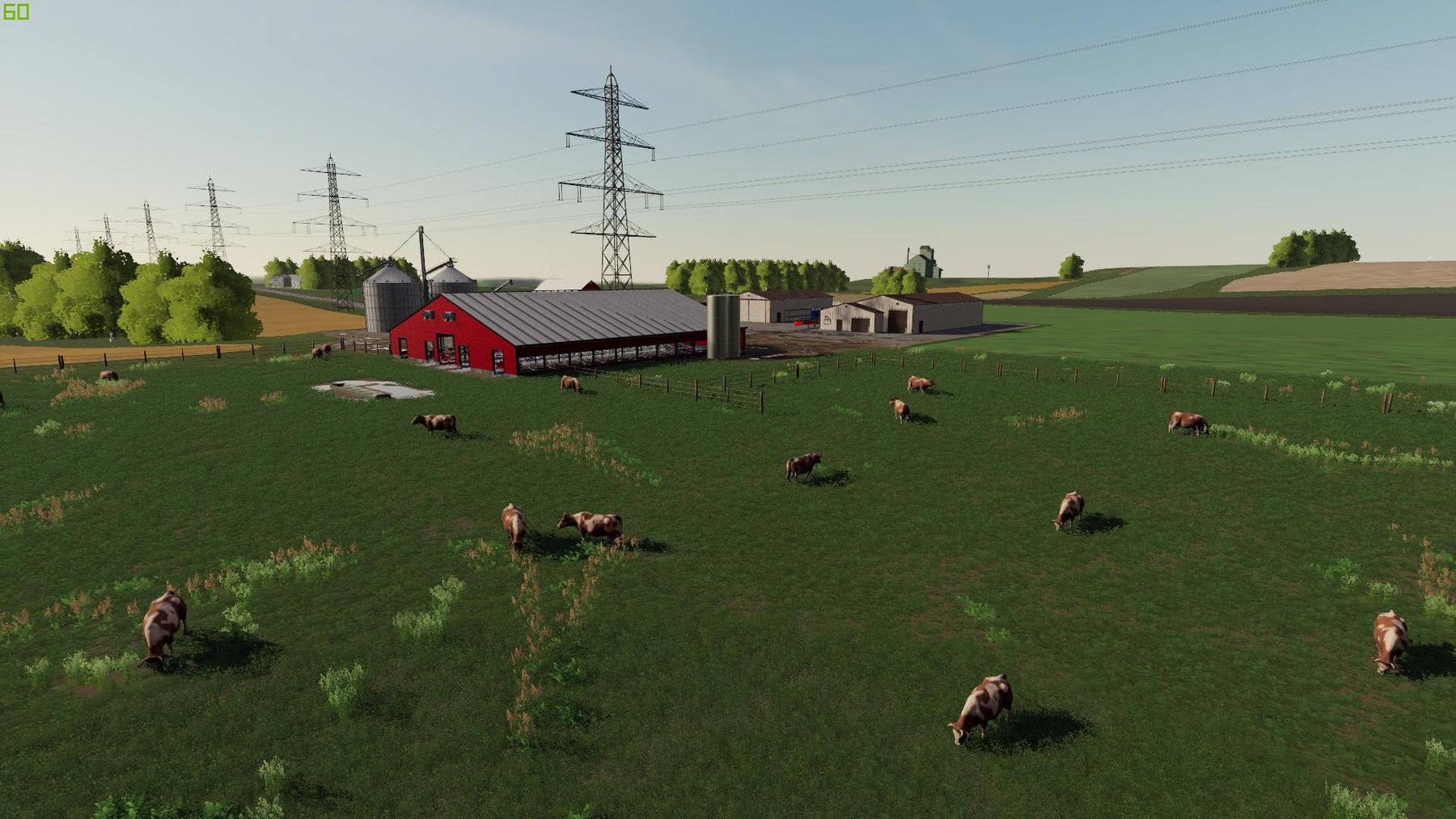 - 4 farm plots on the map with 4 cowsheds and 1 pigsty.