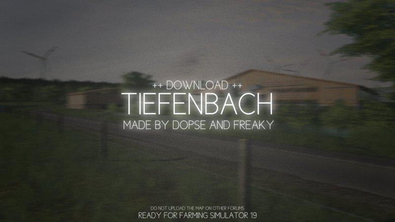 Mod TIEFENBACH MAP V1.0 for Farming Simulator 2019 Hey guys. After much deliberation, I present you here my Tiefenbach for download. Some will complain again why she is uploaded "unfinished" again. It's just that I have no time for mapping and I can upload the map accordingly so that other mapper and players have their fun. The map is not running perfectly though. Credits: Freaky, Dopse |
