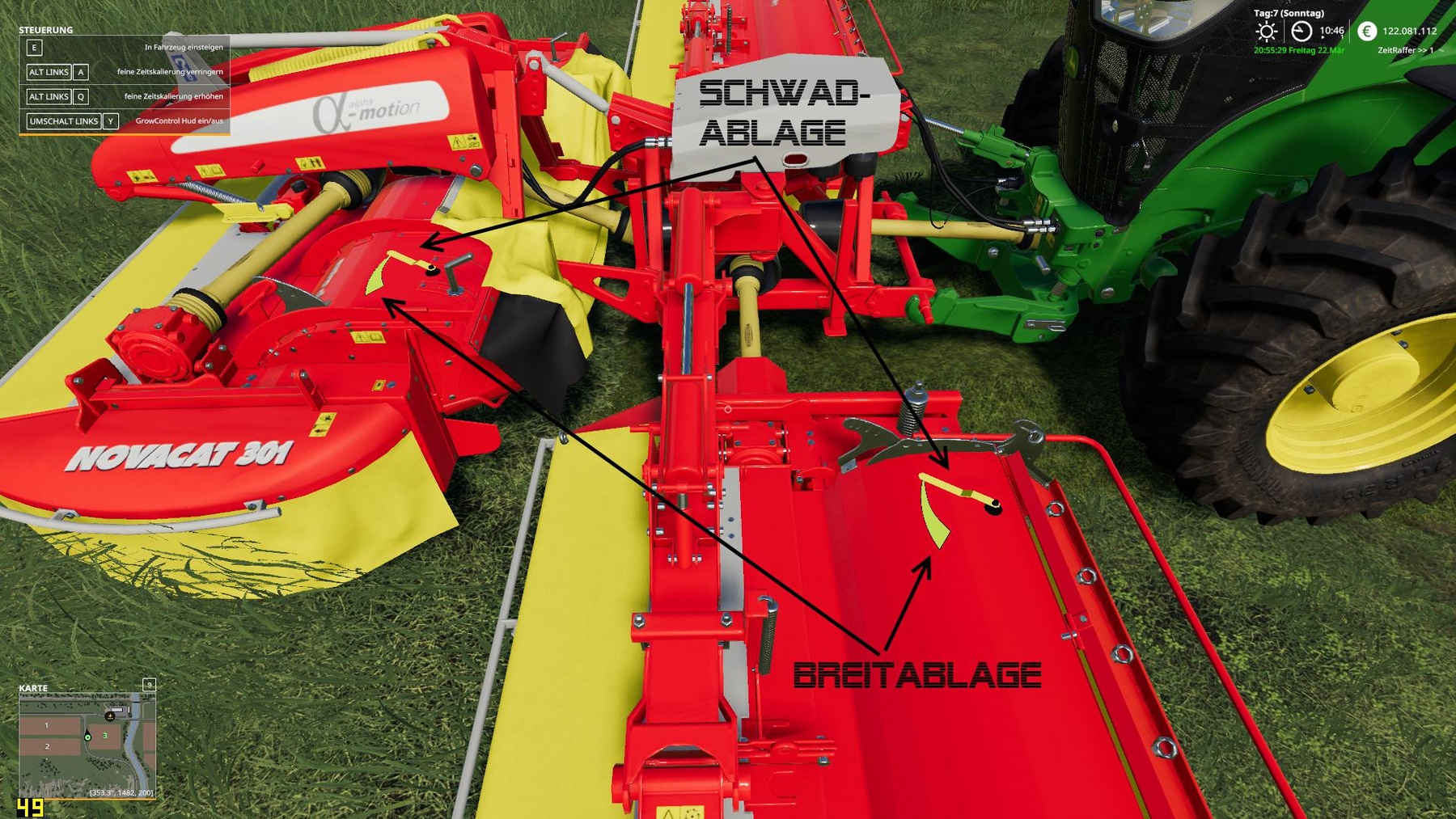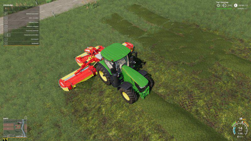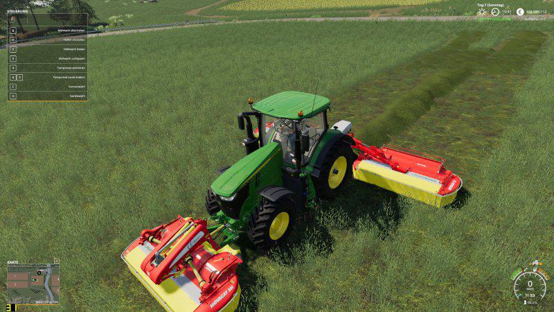 Pöttinger NOVACAD 301 and X8 LS19 with variable swath Both mowers can be switched with the left mouse button & left / right movement from the wide shelf to the swath rest. Any swath width is possible Credits: anthu |