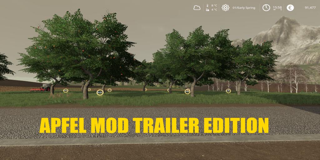 Mod Apfel Trailer Edition v1.1 for Farming Simulator 2019 You need a trailer to load apples Water, dung, and grow apples Version 1.1 Added sign for trailer Added extra capacity Ready for the latest patch Delete the old version
