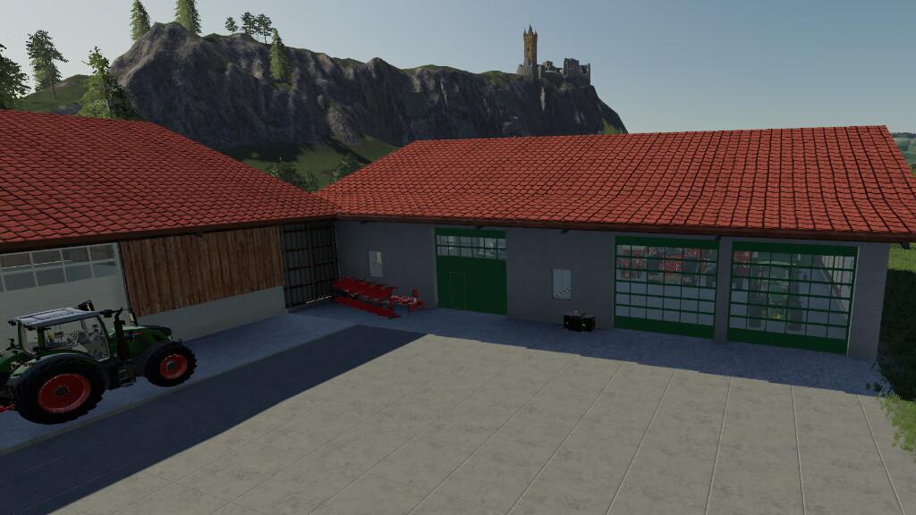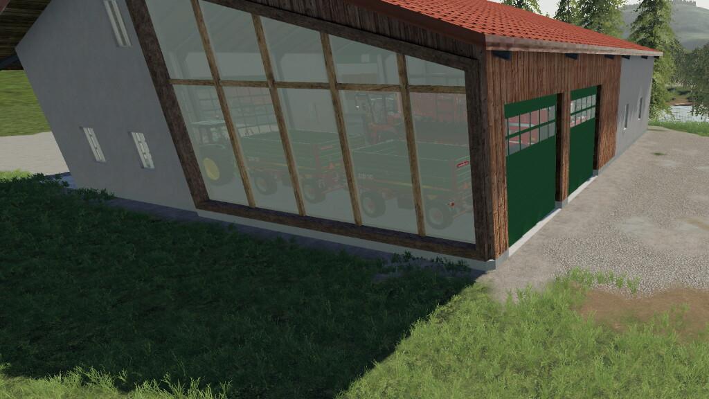 MOD ARCHITECTURE MODELL 2 V1.0.0.0 FOR FARMING SIMULATOR 2019 This building was developed in collaboration with the FarmingFive Group and is the second building in the Modern building series. To ensure that as much light as possible into the garage, not only light-transmitting gates were used, but an all-glass wall was designed, which also gives the building a characteristic appearance. Ideal for indoor work. Credits: farmerfivetom |