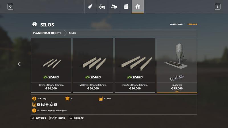 In this warehouse you can store the contents of large packages. You have to load the big bags on the trailer, and then you can store them in stock. This has the advantage that you do not need to leave all the big bags in the yard, but there is everything in one store. To get content from the repository, you have several options. Either with a trailer, bucket, or you can load it directly into designated vehicles. What can be stored: Credits: Giants Software |