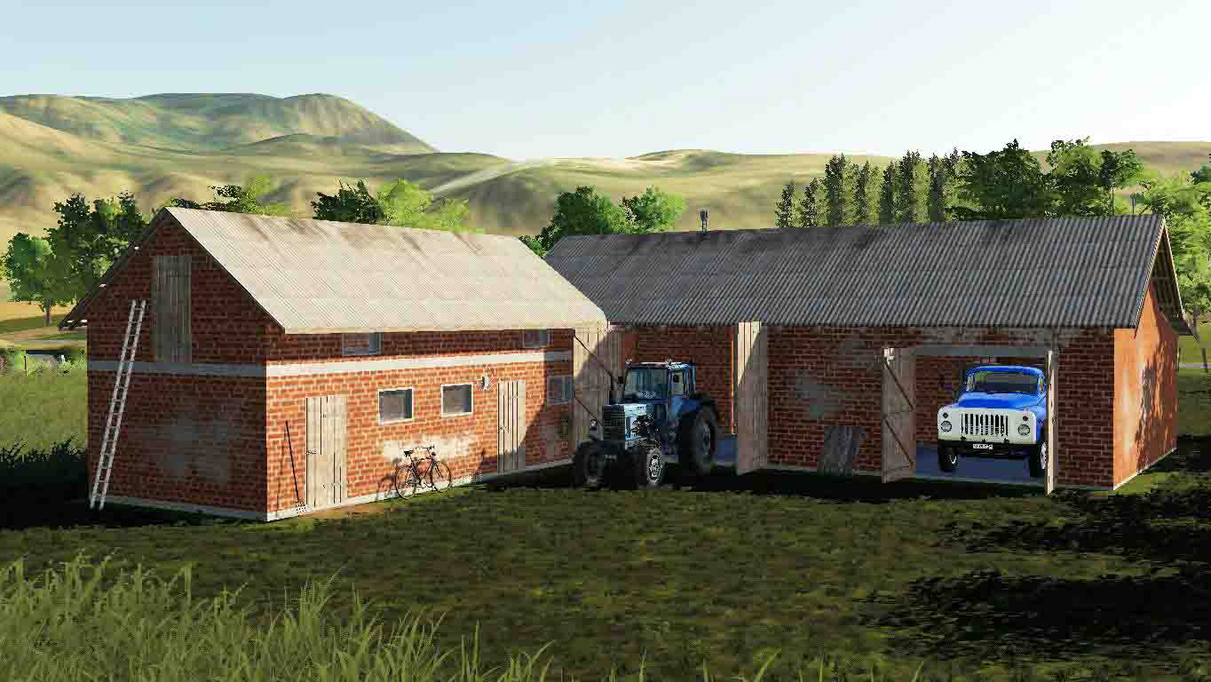 MOD BUDYNEK GOSPODARCZY V1.0 FOR FARMING SIMULATOR 2019 A small purchased storage of equipment and agricultural implements. - Gates and doors open; - Interior lighting. Category: Static Objects> Pens.