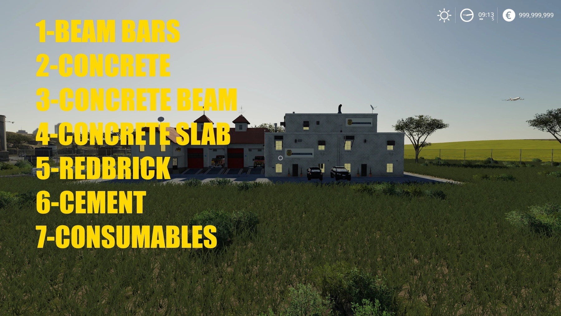 MOD BUILD A SECURITY BASE V1.0 FOR FARMING SIMULATOR 2019 With this mod, you create a security base. You have to play step by step ONE put 5 pallets of BeamBars = 80,000 TWO put 5 80,000 concrete THREE put 5 pallets of ConcreteBeam = 80000 FOUR put 5 pallets ConcreteSlab = 80000 5 put 5 pallets of red brick 80,000 SIX put 80,000 cement 7 put 5 pallets of consumables 80,000 Credits: GIANTS GC TheSnake |