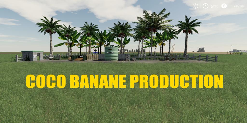 Mod COCO BANANE PRODUCTION V1.0 for Farming Simulator 2019 Plantation for growing coconuts and bananas. Mod Features Requires Global Company script. Credits: TheSnake |