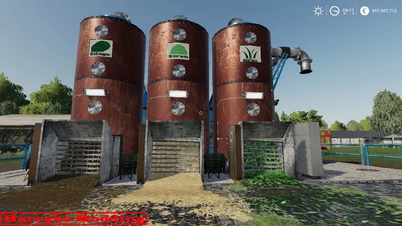 МOD Compound feed system v1.1 for Farming Simulator 2019 Compound feed system V1.1 for LS19 This system is used for the production of concentrated feed for cows. I have already created this system for LS17. Now I decided to remake this mod for LS19. This version also increased the capacity to 500000e. Silo capacity: 500,000 silage 500,000 straw 500,000 grass Yield: 500,000 compound feed (concentrated feed) Mixing ratio: silage 50% (100 <50) Straw 25% (100 <25) Grass 25% (100 <25) It is also possible to use the system in as a buffer. More silage is required compared to straw and grass. The price is 120,000 euros. The outer dimensions are 22.5 by 27.5 m. There are 3 places in the system, but the tilt trigger is installed as a single object. It doesn't matter where you roll over. This has the advantage that you can use the game course to access a system that can start off well. You can find this mod in the POWER category !! Garribo wishes you a lot of fun. Credits: Harrybo |