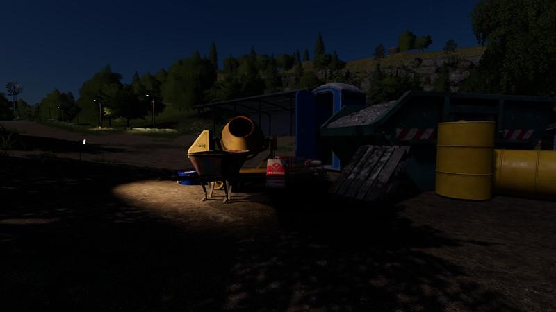 Small construction site with Kackhaus and ko Facts: Freely Placed / Non-Background Texture lit at night
